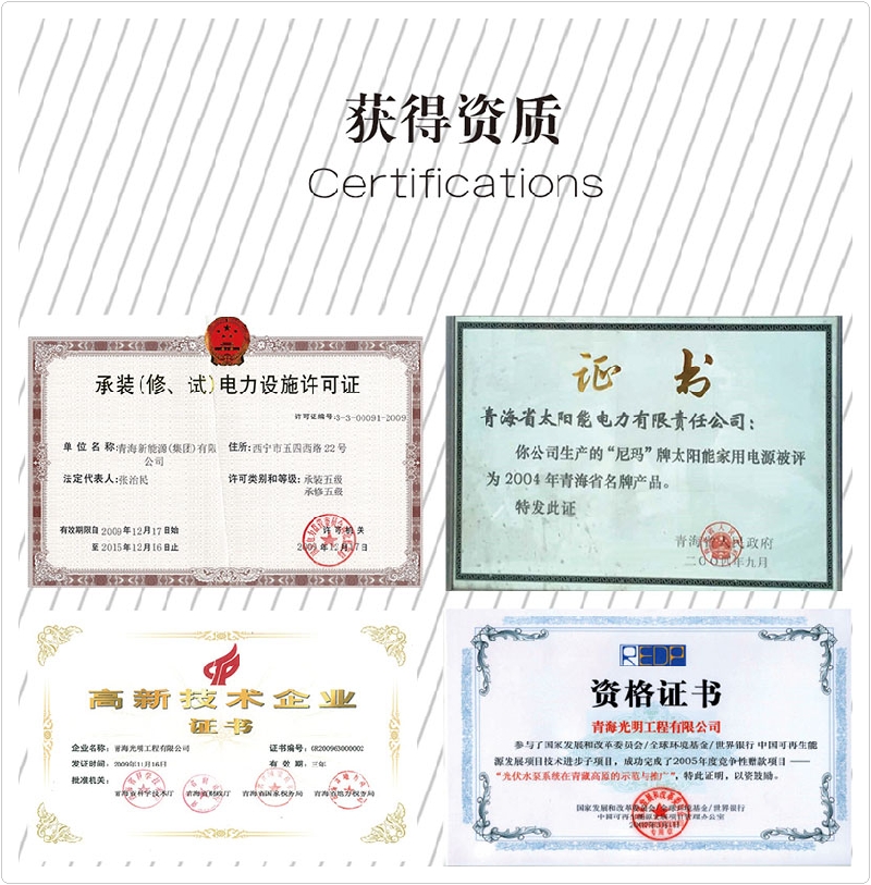 公司先后榮獲“全國(guó)專(zhuān)利先進(jìn)科技研究院”、“全國(guó)各族青年團(tuán)結(jié)進(jìn)步集體”、“青年文明號(hào)”,“青海省模范集體”,“全國(guó)教科文衛(wèi)系統(tǒng)先進(jìn)工會(huì)組織”、全省“學(xué)習(xí)型組織標(biāo)兵”單位、全國(guó)“創(chuàng)新性試點(diǎn)企業(yè)”、連續(xù)三年被中國(guó)農(nóng)業(yè)銀行青海分行授予“AAA信用企業(yè)”和“AAA優(yōu)良客戶(hù)”等榮譽(yù)稱(chēng)號(hào)。公司擁有“尼瑪”牌太陽(yáng)能。